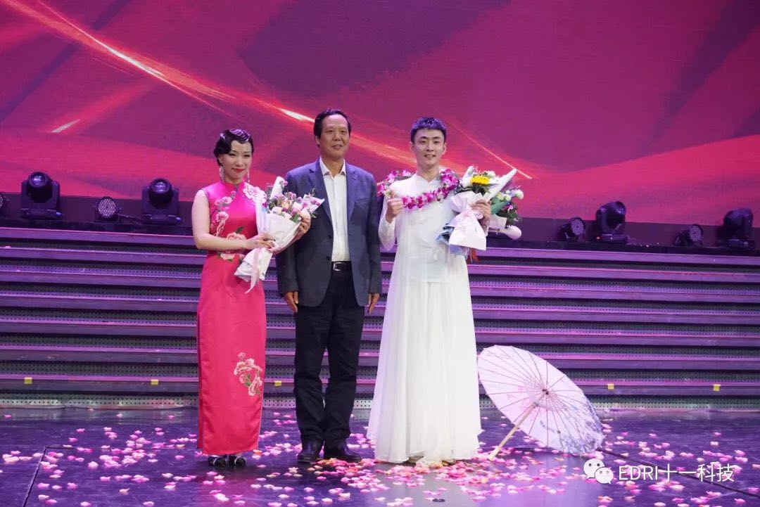 两位著名艺术家的朗诵与舞蹈,深厚功底让人叹服,再次激起会场小高潮,鲜花送上台,掌声响不停。