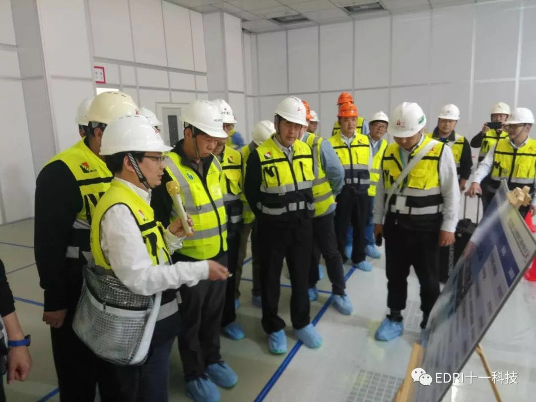 在总包联合体的引导下,张素心、陈剑波、唐均君、赵振元、白焰等同志到F1洁净室、V1变电站、C1动力厂房进行参观,并听取了联合体总包单位及相关分包单位的汇报。