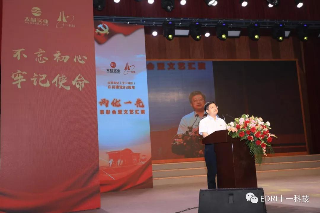 太极实业副总经理、党委副书记、纪委书记、工会主席杨少波宣读太极实业“两优一先”表彰文件:太极实业综合党支部等5个党组织被授予“先进基层党组织”称号;授予徐俊兴等29名同志“优秀共产党员”称号;授予陈凯等8名同志“优秀党务工作者”称号。