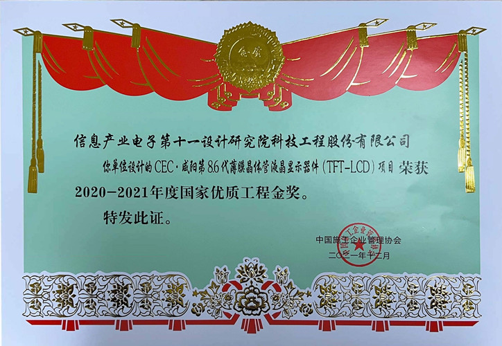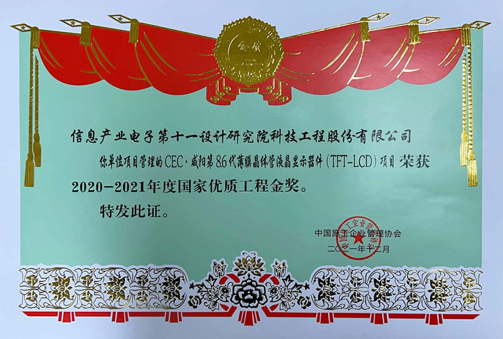 咸阳第8.6代国家优质工程金奖(项目管理)