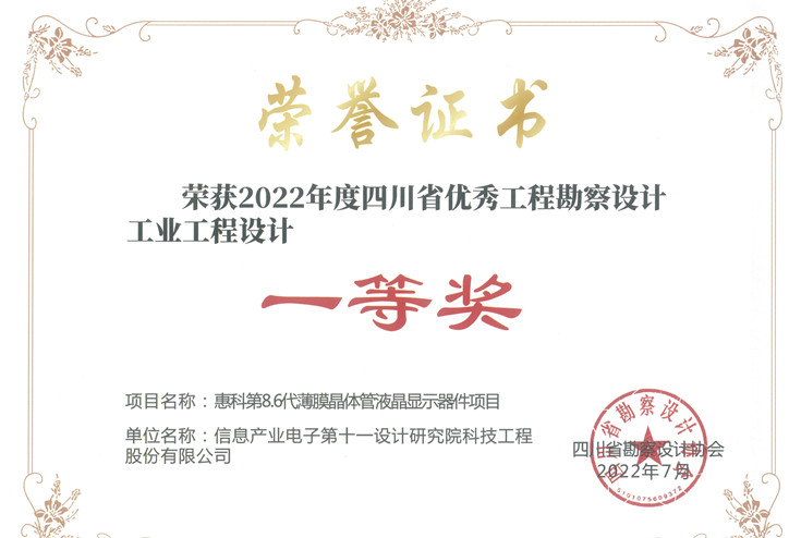 惠科第8.6代四川省一等奖