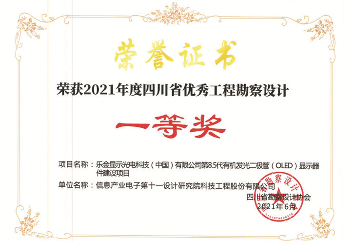 乐金第8.5代有机发光二极管四川省一等奖